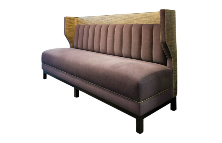 Material: Upholstered seat, set on a stratified ABS brass-finish base with walnut laminate veneer and optional Silestone central tray