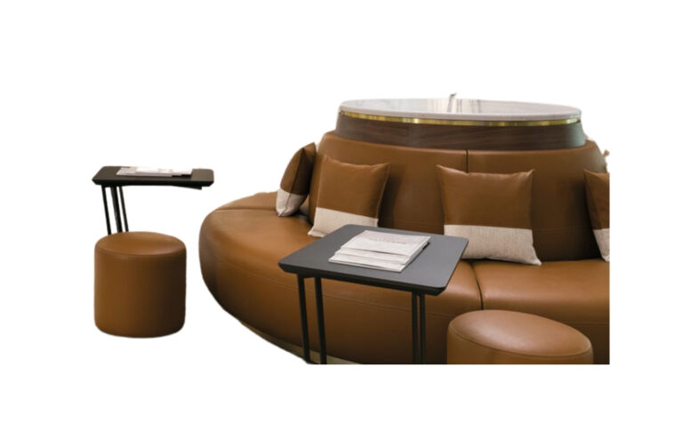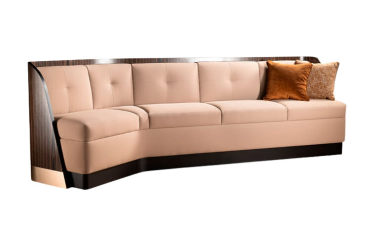 Material: Upholstered seat and back on solid wood frame with fire‑resistant high-density foam and lacquered MDF base or laminated sides