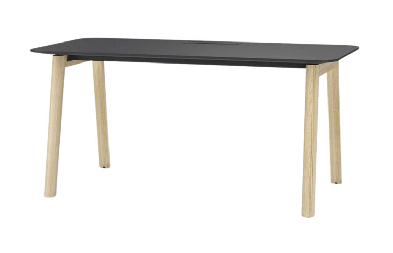 Note: Features a sliding top panel for cable access. The shared intermediate frame allows desks to be positioned side by side while reducing the number of legs required.