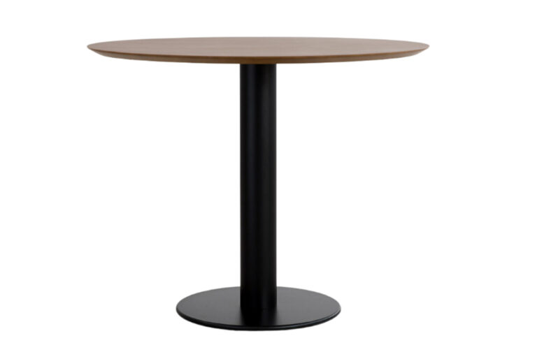 Material: Base in powder coated steel. Tabletop in oak veneer.