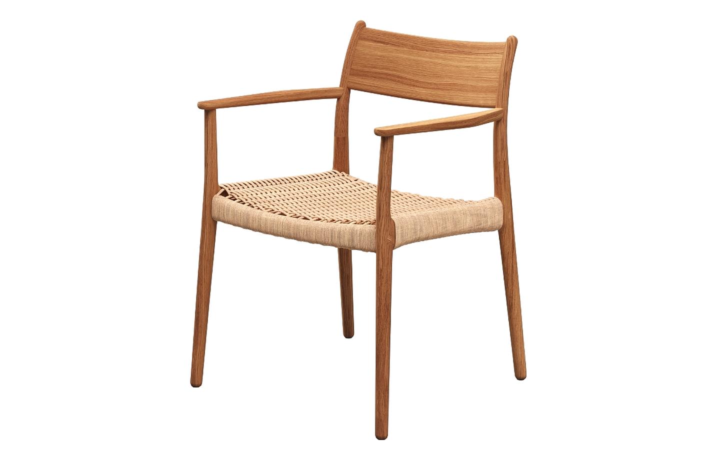 Material: Natural finish teak frame, woven all-weather wicker seat.