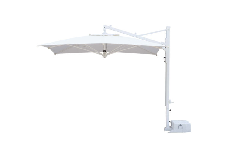 Finishes/Colors: Various Features: Retractable side arm, 360° Rotation, Manual opening with crank with winch and stainless steel cable Accessories: LED Lights, Heaters, Lateral walls, Gutters (Not included – Available on request)