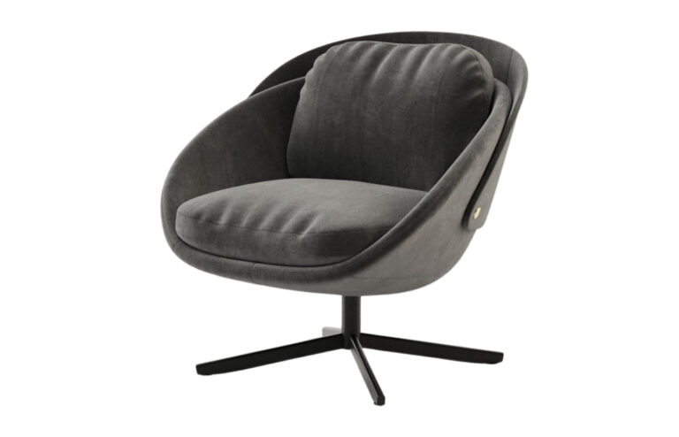 Material: Molded PU-foam shell with steel reinforcement, upholstered in fabric or leather, on swivel base in metal