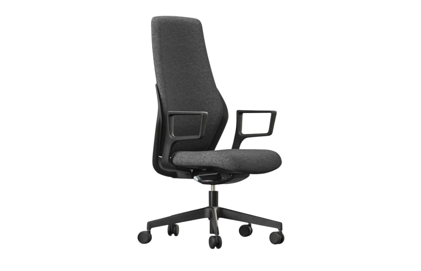Material: Powder-coated steel tube frame on castors, topped with chipboard shelves. PET felt panel on the back to absorb noise and visually close the unit